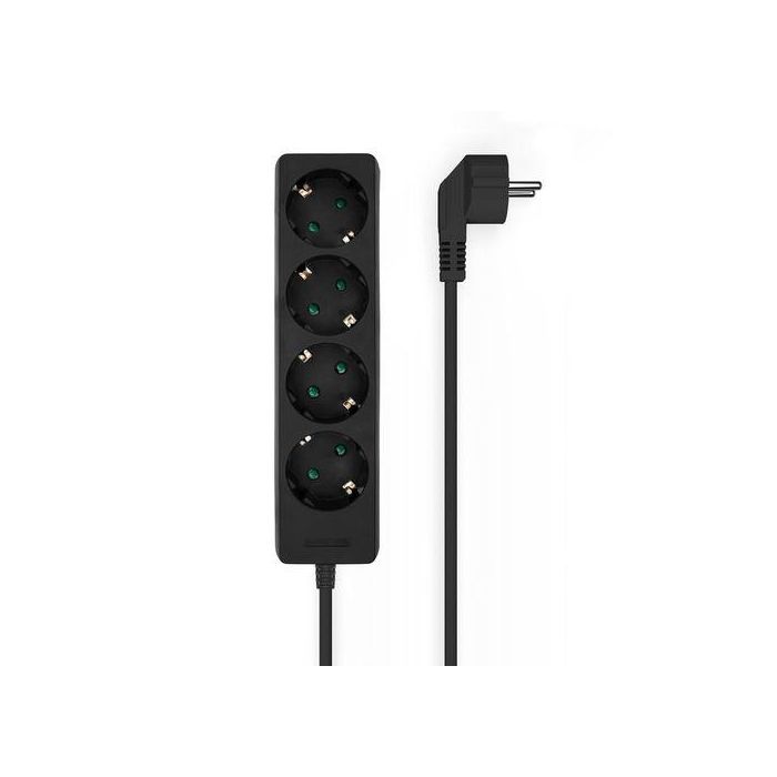 Tensión: 250 V/16 A | Potencia máxima: 3500W | Interruptor: NO | Cantidad de tomas Schuko: 4 | Sección de conductor: 1.5MM2 | Material de conductor: 100% cobre | Longitud: 1.4M | Color: Negro | Normativas: RoHS, CE | Test de funcionamiento: 100% testeado