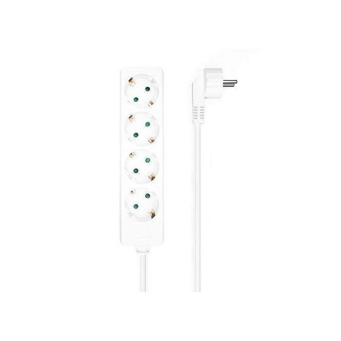 Tensión: 250 V/16 A | Potencia máxima: 3500W | Interruptor: NO | Cantidad de tomas Schuko: 4 | Sección de conductor: 1.5MM2 | Material de conductor: 100% cobre | Longitud: 1.4M | Color: Blanco | Normativas: RoHS, CE | Test de funcionamiento: 100% testeado