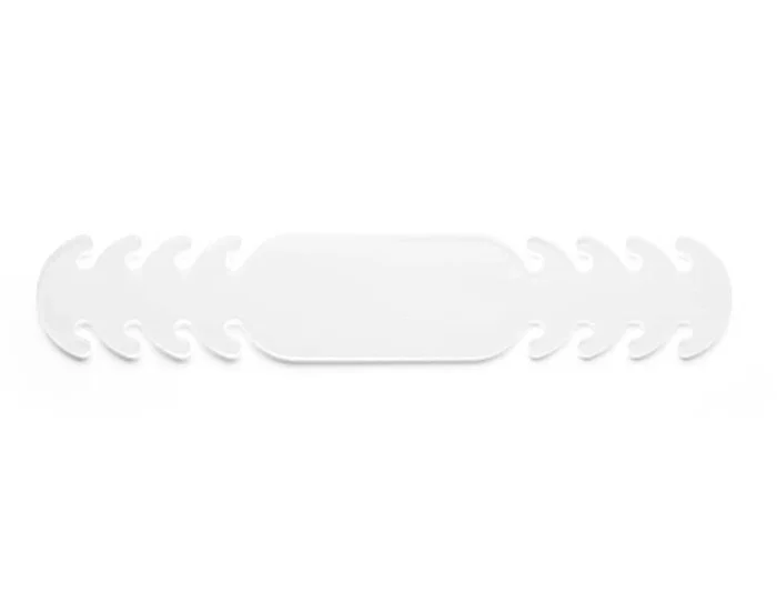 Confortable ajustador flexible para mascarilla, en resistente y suave silicona. Fácil de desinfectar después de cada uso, con 3 posiciones de ajuste. Presentado en bolsita individual. Medidas: 194 x 18 x 2 mm.