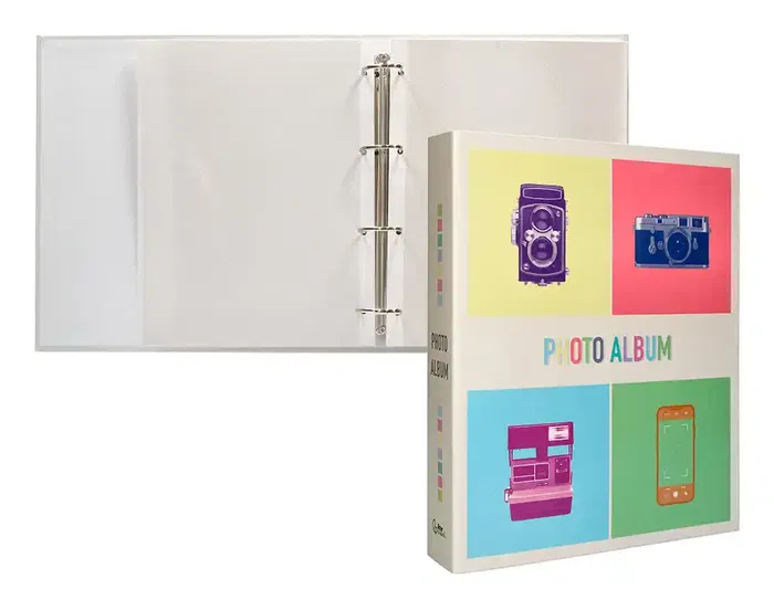 ATRACTIVO ALBUM DE FOTOS PARA TODOS TUS MOMENTOS Y MEJORES RECUERDOS. CÓMODO Y VERSÁTIL, CON ANILLAS QUE PERMITEN MAS CAPACIDAD DE HOJAS. CONTIENE 20 HOJAS AUTOADHESIVAS EN CARTON BLANCO Y LÁMINA PROTECTORA DE PVC. MEDIDAS ALBUM 325X270MM.