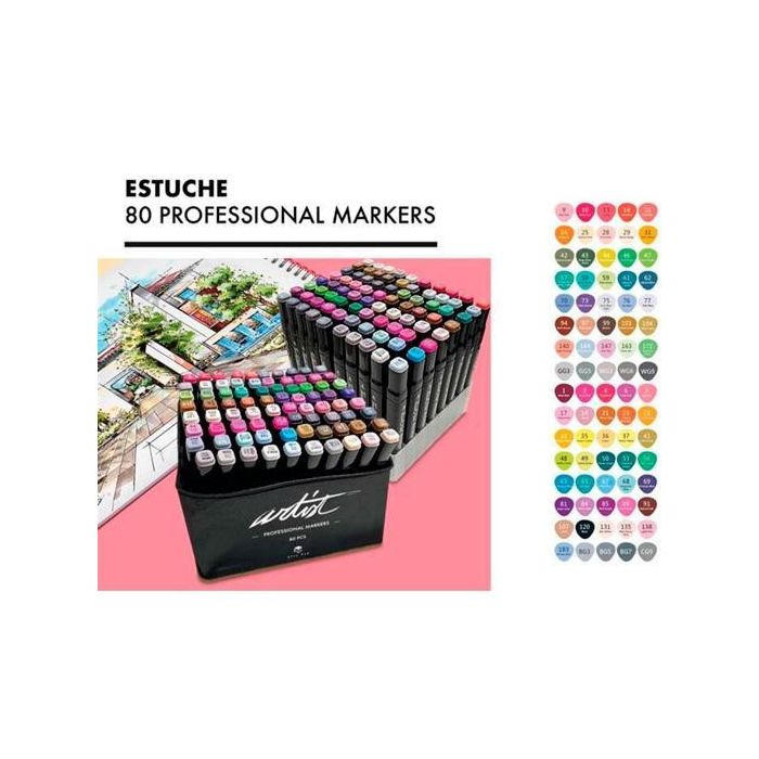 Alex Bog Rotuladores Luxury Canvas Gama Artist Doble Punta Fina-Biselada Estuche De Lujo 80 Ud