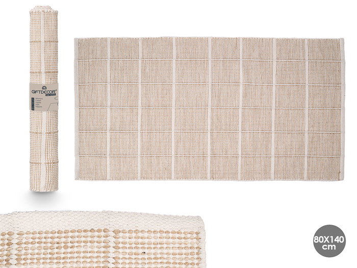 ALFOMBRA ARTESANAL 80X140CM CUADROS BEIGE