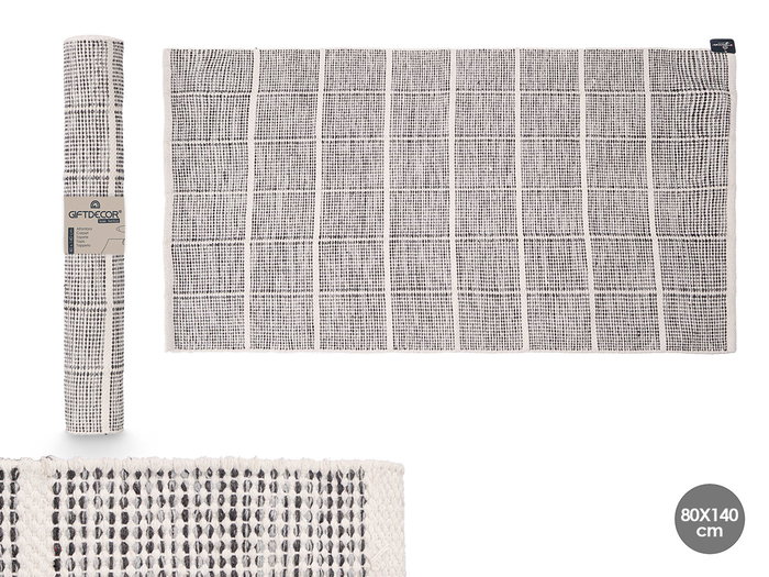 ALFOMBRA ARTESANAL 80X140CM CUADROS GRIS
