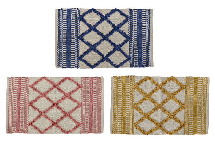 DKD Home Decor Alfombra de Baño Básicos Algodón Poliéster Amarilla Rosa Azul 50x80 cm (6 Unidades) Lavable a Máquina
