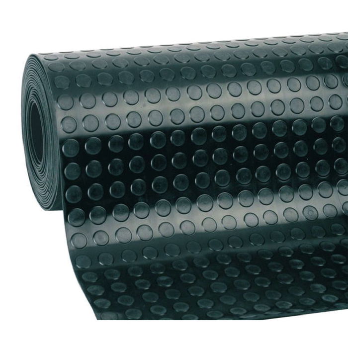 Rollo de suelo caucho-goma grosor 3 mm - ancho 1,2 x 10 m largo. composición 100% goma caucho. color negro diseño círculos. uso doméstico / profesional
