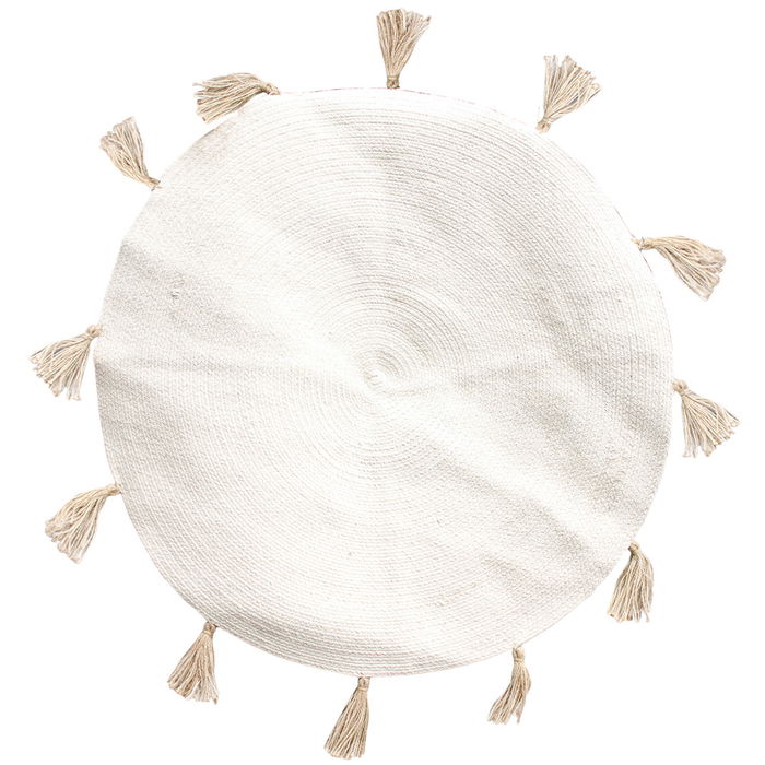 - Alfombra con flecos en el contorno.