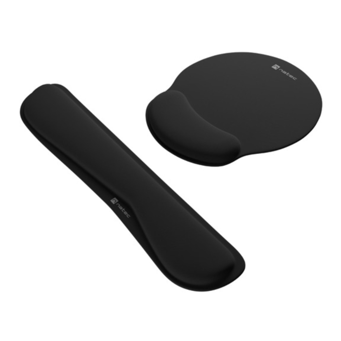 NATEC NPF-2195 Alfombrilla para Ratón Negro con Reposamuñecas, Base Antideslizante, Tela, Espuma, Caucho, Monocromo