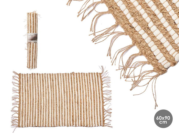 Giftdecor Alfombra Natural Doble Raya Blanco y Natural 60 x 90 cm Yute y Algodón (Set de 12)