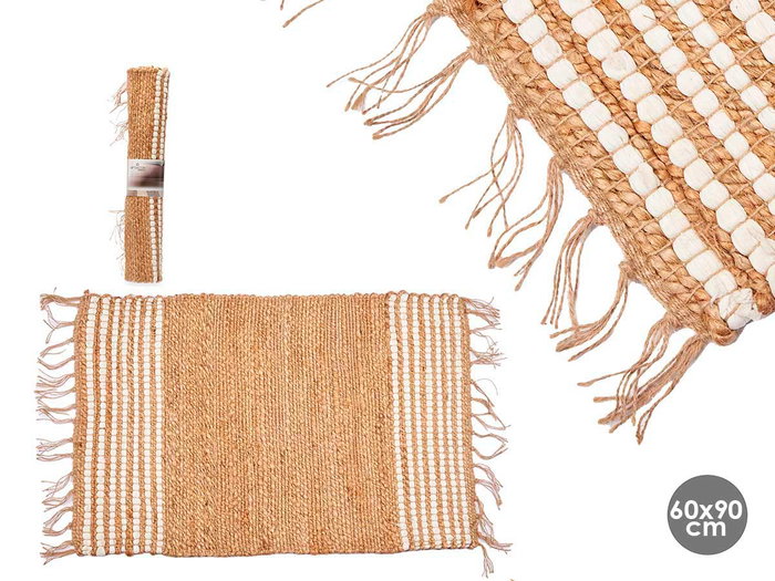 Giftdecor Alfombra Natural Yute Algodón Blanca Rayas Negras 90x60 cm (Set de 12)