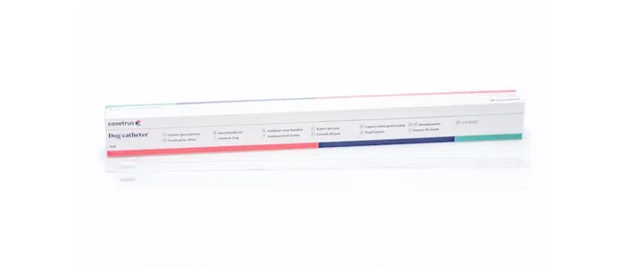 Catéter urinario para perros marca Covetrus, referencia 8FG (2.66 x 500mm). Fabricado en polipropileno con ajuste Luer para una conexión segura y fácil.