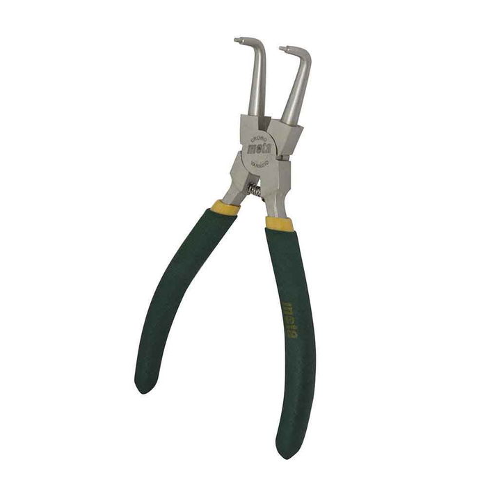 Alicate c.v seeger curvo cerrar 180 mm. para abrir o cerrar arandelas de seguridad de 190 a 60 mm - ¾ pulg a 2 3/8 pulg. acero al carbono. terminación niquelada. mangos con aislación sumergida. puntas de encastre antideslizantes