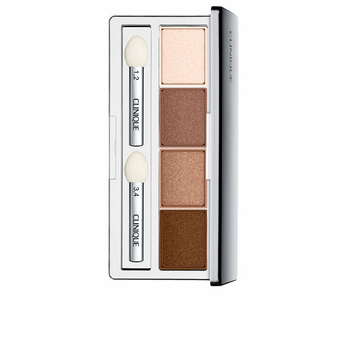 Descubre el Compacto de Sombras de Ojos CLINIQUE ALL ABOUT SHADOW quad #Teddy Bear de 4,8 gr. Esta paleta de la marca Clinique incluye cuatro tonalidades versátiles en el color Teddy Bear. Puedes usar cada uno de los colores de manera individual o combinarlos para conseguir un look que resalte tu belleza. Estas sombras han sido formuladas para ofrecer una resistencia excepcional a manchas y desvanecimientos, garantizando que tu maquillaje se mantenga impecable durante todo el día. Además, han sido sometidas a pruebas oftalmológicas, lo que las convierte en una opción segura incluso para quienes tienen ojos sensibles o utilizan lentes de contacto. Vienen presentadas en un estuche elegante con bellas ilustraciones y se incluyen dos aplicadores de esponja, lo que proporciona comodidad y facilidad en su aplicación. Desde estilos sutiles hasta creaciones más sofisticadas, disfrutarás de colores vibrantes y de larga duración que complementarán tu mirada.