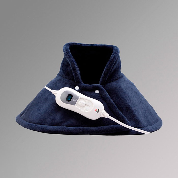 Almohadilla eléctrica ajustable para la zona cervical y hombros de 100 w, regulable 3 niveles, doble sistema de seguridad: autoapagado en 90 min y sobrecalentamiento, display retroiluminado, tejido extra suave y de alta calidad, funda lavable, conexión extraíble, 230 v~50 hz. dimensiones: 60 x 62 cm