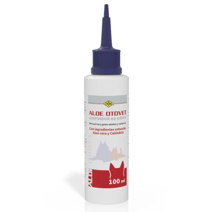 Aloeotovet de Fatro es una solución ótica para perros y gatos. Este producto, presentado en un envase de 100 mL, está formulado para el cuidado y la higiene del oído de tus mascotas.