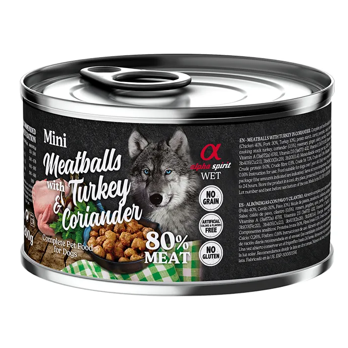 Alimento Húmedo para Perros Alpha Spirit Albóndigas de Pavo con Cilantro