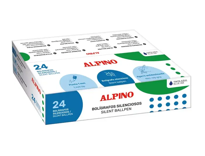 Alpino Bolígrafo Retráctil con Click Silencioso, Punta de 1 mm y Agarre Antideslizante para Escritura Cómoda, Tinta Azul