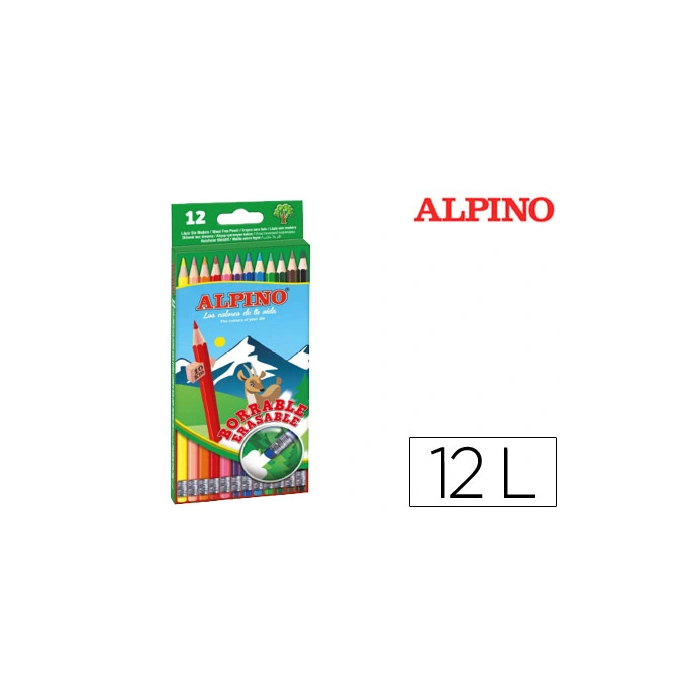 Alpino Lápices de Colores Borrables con Goma Caja de 12 Colores Surtidos