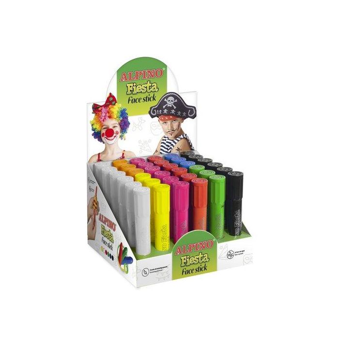 Alpino Maquillaje En Barra Fiesta Face Stick Caja Expositora De 30 C-Surtidos Amarillo Blanco Rojo Verde Azul Negro