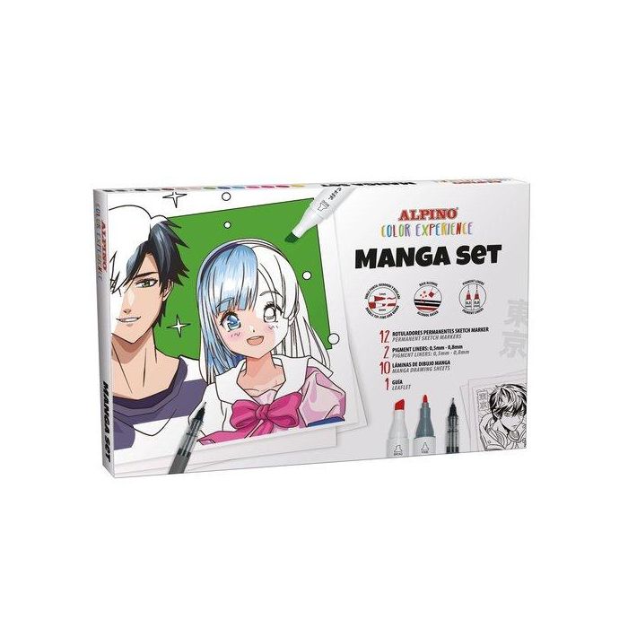 Alpino Rotuladores Manga Set Color Experience Estuche 14 Ud + Láminas + Guía de Iniciación