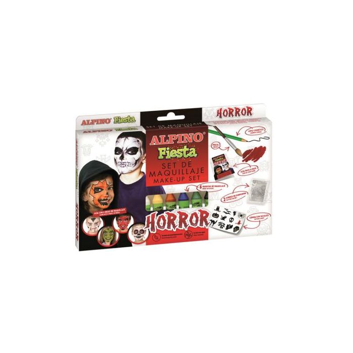 Alpino DL000107 Pintura para Cara y Cuerpo Set Maquillaje Horror Multicolor con 6 Barritas 5gr, Lápiz, Pincel y Tatuajes Brillantes, Apto Infantil y Adulto, Lavable