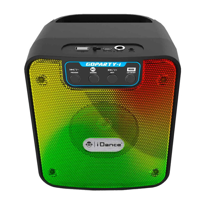 Altavoz iDance BT MIN con luces LED y 5W de potencia. Dimensiones: 158 x 158 x 180 mm.