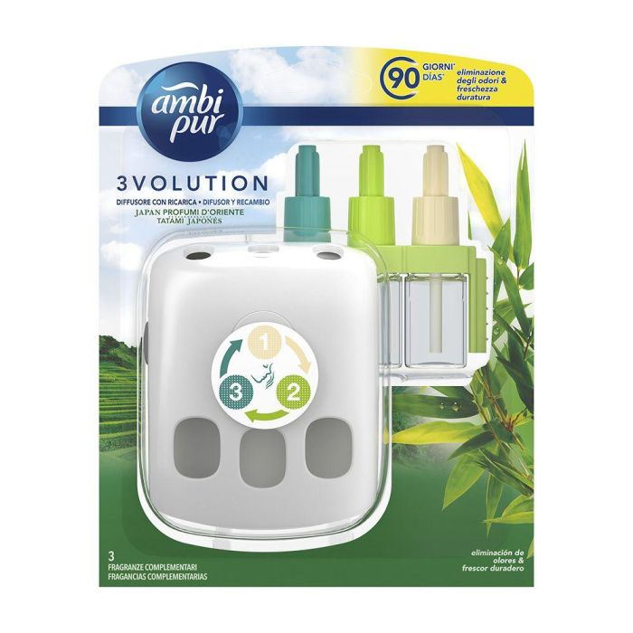 Ambipur 3volution Ambientador Eléctrico Japan Tatami, Difusor con 3 Fragancias y Recambio, 21 ml