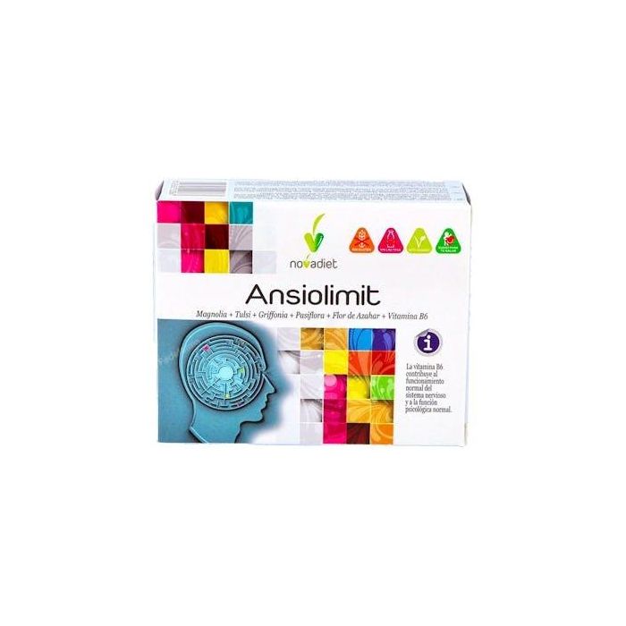 NOVADIET Ansiolimit 60 Cápsulas, Suplemento para el Sistema Nervioso con Magnolia, Tulsi, Grifonia y Vitamina B6