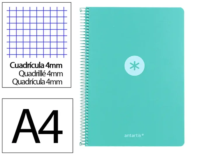 Cuaderno espiral antartik a4 tapa foam 80h 90gr cuadro 4mm con margen color menta