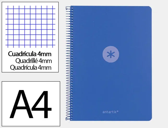 Cuaderno espiral antartik a4 tapa foam 80h 90gr cuadro 4mm con margen color azul