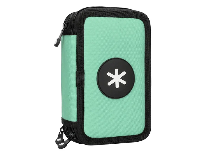 Plumier de tela alta calidad con 3 cremalleras. Contiene: 12 rotuladores, 18 lápices de colores, 1 sacapuntas, 2 lápices HB, 1 goma, 1 regla y 1 semicírculo de 10 cm. Medidas: 200 x 125 x 65 mm.