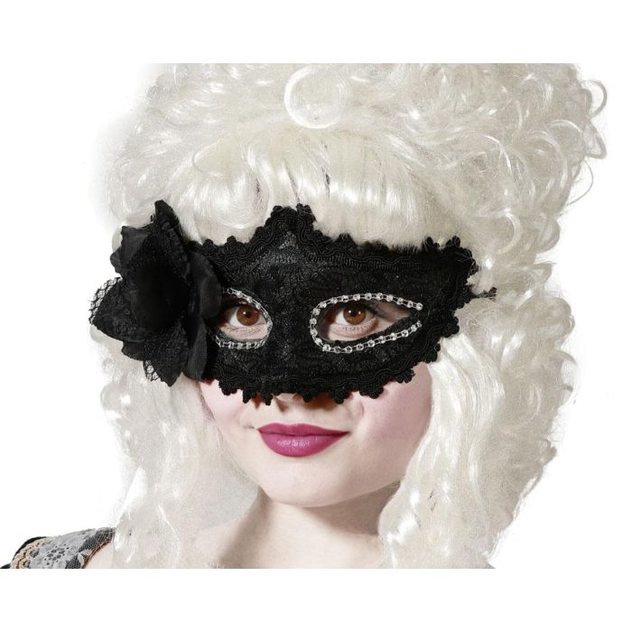Antifaz Negro Máscara Veneciana de Encaje con Flor Lateral para Fiestas y Disfraces