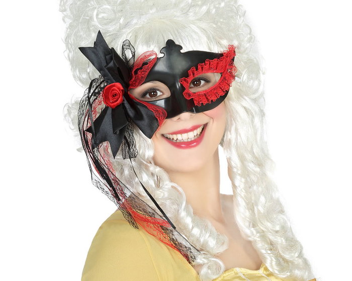 Máscara Veneciana de Carnaval Roja y Negra - Accesorio para Disfraces de Vampiresa o Temática Gótica