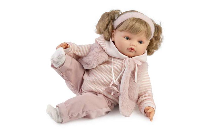 Antonio Juan Muñeca Beni Lloro 42cm con Mecanismo de Sonido, Jersey Rayas, Funciona con Pilas, Idioma Español y Otros