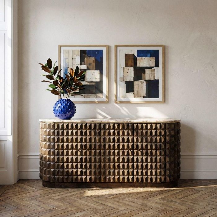 - Material: Madera de Mango, Mármol
