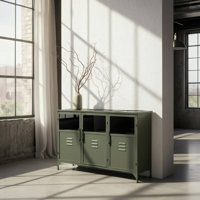 Aparador Verde Menta Metal-Cristal 120 X 35 X 76 cm