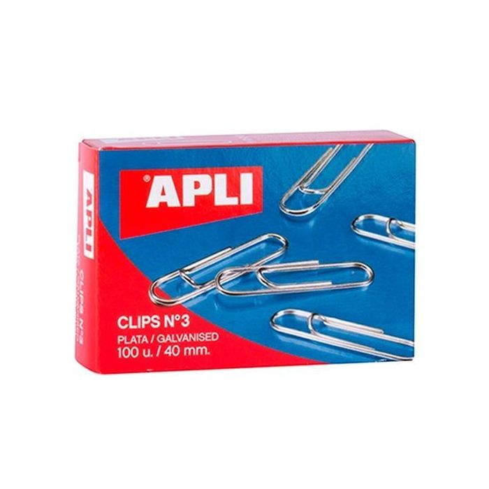 Apli Clips Plateados Nº 3 - 40 mm Caja De 100 -10 Cajas-