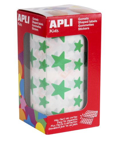 Gomets con adhesivo permanente presentados en estuche, Cada estuche contiene 59 hojas separadas entre sí por una línea de trepados que permite separar las hojas fácilmente, convirtiéndolo en un formato muy adecuado para escuelas o colectivos donde se trabaje con niños.