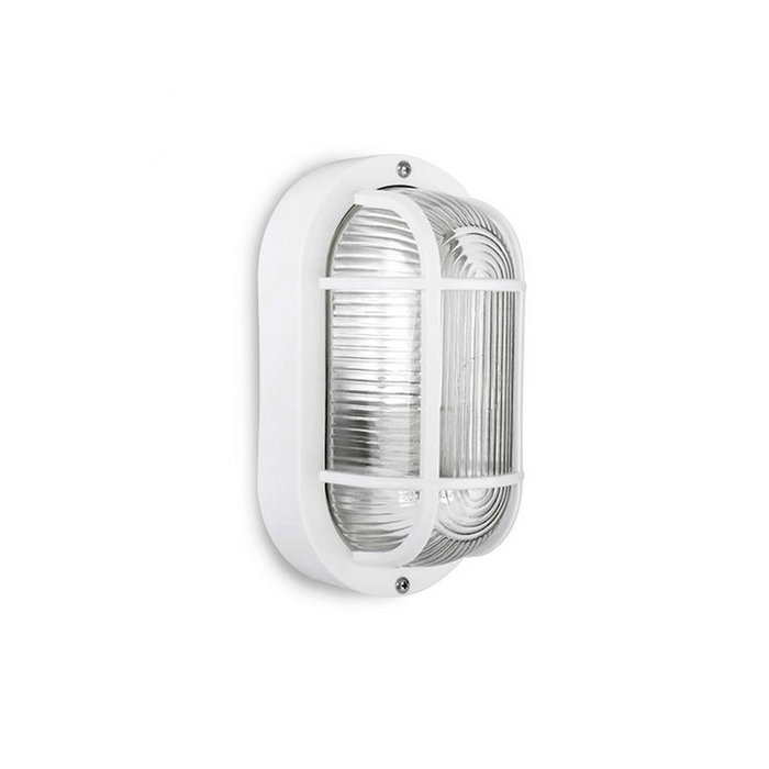 Aplique oval blanco 1xe27 40w medidas: 11,4x20,2x10,cm modelo tarragona (bombilla no incluida) material: plastico/cristal. tension: 220-240v ip54
