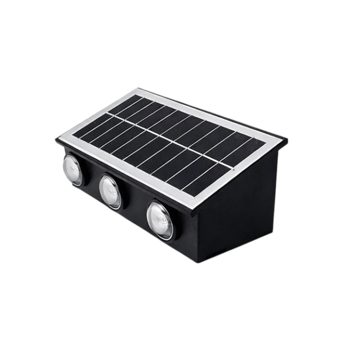 Aplique LED solar diseñado para iluminación exterior eficiente y autónoma. Funciona mediante energía solar, incorporando un panel fotovoltaico de alta eficiencia que carga su batería interna durante el día para operar automáticamente por la noche.Características Técnicas: Potencia: 3.0 W Tecnología LED: Alta eficiencia y bajo consumo Alimentación: Energía solar Batería: Litio recargable 3,7 V Panel solar: Integrado, alta captación de luz Grado de protección: IP65 (resistente al polvo y a chorros de agua) Encendido: Automático (sensor crepuscular) Instalación: Montaje en pared, sin cableado Uso: Exterior (fachadas, jardines, pasillos, patios, entradas) Ventajas: Ahorro energético total (no requiere conexión eléctrica) Fácil instalación y mantenimiento mínimo Iluminación segura y ecológica Alta resistencia a condiciones climáticas adversas Ideal para proyectos de iluminación exterior donde se requiera eficiencia, autonomía y durabilidad.