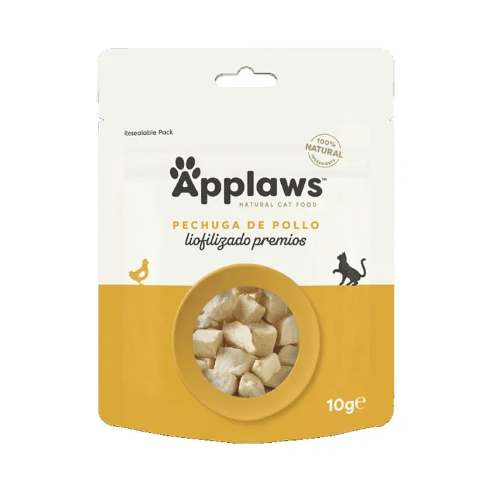 La marca Applaws es reconocida por su compromiso con la alimentación natural para mascotas. Aporta una textura y sabor que los gatos adoran, siendo perfecto para recompensas, entrenamiento o simplemente para mimar a tu compañero.