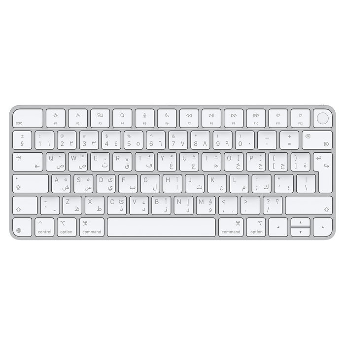Apple Magic Keyboard con Touch ID para modelos de Mac con chip de - Árabe, Tenkeyless (sin zona numérica) (80 - 87%), Inalámbrico y alámbrico, USB + Bluetooth, Plata, Blanco