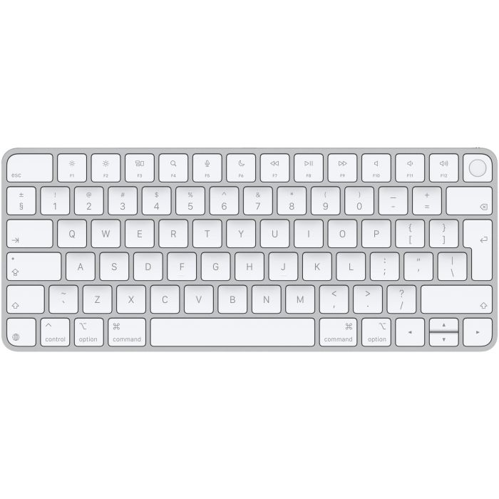 Apple Magic Keyboard con Touch ID para modelos de Mac con chip de - Inglés internacional, Tenkeyless (sin zona numérica) (80 - 87%), Inalámbrico y alámbrico, USB + Bluetooth, QWERTY, Plata, Blanco