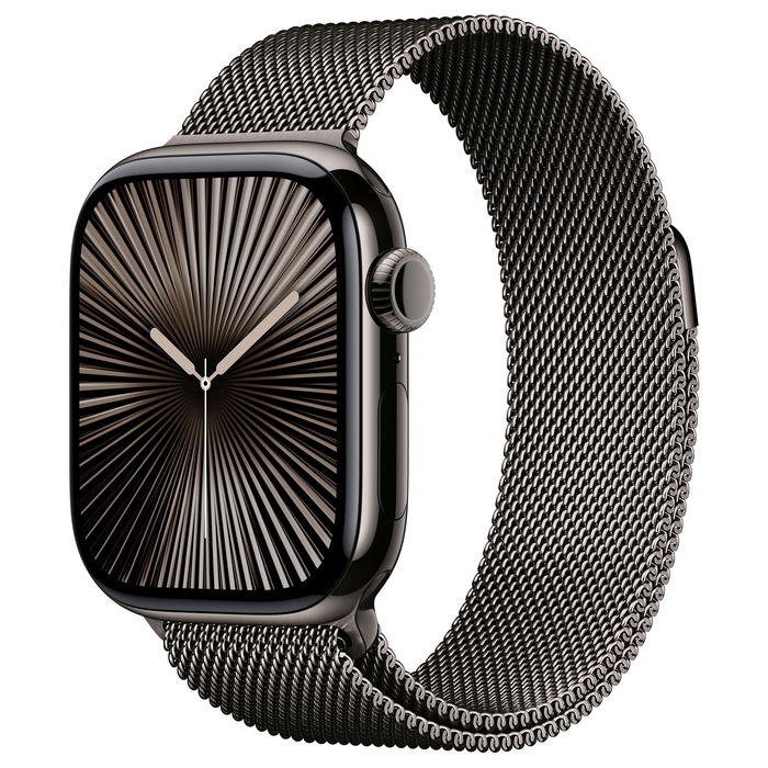 Apple Watch Series 10 GPS + Cellular 42mm Caja de Titanio Gris con Correa Milanesa de Acero Inoxidable Gris, Pantalla OLED, 64 GB, watchOS 11, Resistente al Agua