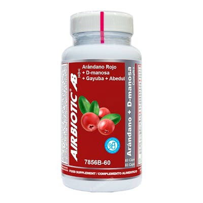 Indicaciones: El arándano rojo americano (cranberry o Vaccinium macrocarpon) se utiliza, en todo el mundo, como complemento alimenticio de gran valor, especialmente entre el público femenino. Muchos productos se desarrollan a base del zumo de este fruto, pero la mayoría de ellos contienen altos niveles de azúcar que pretenden disimular el sabor ácido de la baya. Para evitar este problema, Cranberry + D-Mannose Complex de Airbiotic se presenta en cápsulas. Arándano + D-manosa Complex de Airbiotic contiene, por cápsula, 125 mg de PACs estandarizado, lo que equivale a más de tres veces las cantidades utilizadas habitualmente, y contribuye a mantener las vías urinarias en condiciones normales. Además, se le ha añadido vitamina C, que contribuye a mantener el sistema inmune en condiciones normales y al normal mantenimiento de las mucosas. Producto sin gluten, ni lactosa. Apto para vegetarianos y veganos.