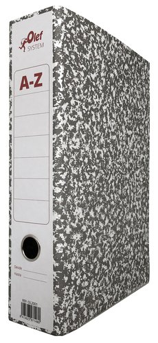 Archivador, forrado interior y exteriormente con papel impreso, con mecanismo de palanca niquelado, cantonera, ollao en el lomo y rado. Un archivador clásico en color gris.