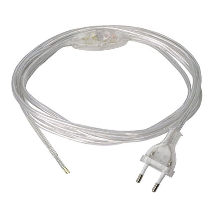 Conexión eléctrica con interruptor de mano, lfm 275/100-50, transparente, cable 1,5 m de manguera plana h03vvh2-f, 2 x 0,75 mm². con interruptor de mano a extremo libre 0,5 m. extremo libre desforrado 21 mm y pelado electrosoldado 7 mm