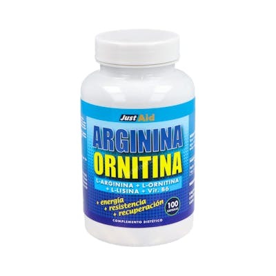 JUST AID Arginina+Ornitina (Aminoacidos) 100 Comp. con L-Lisina y Vitamina B6 para metabolismo energético