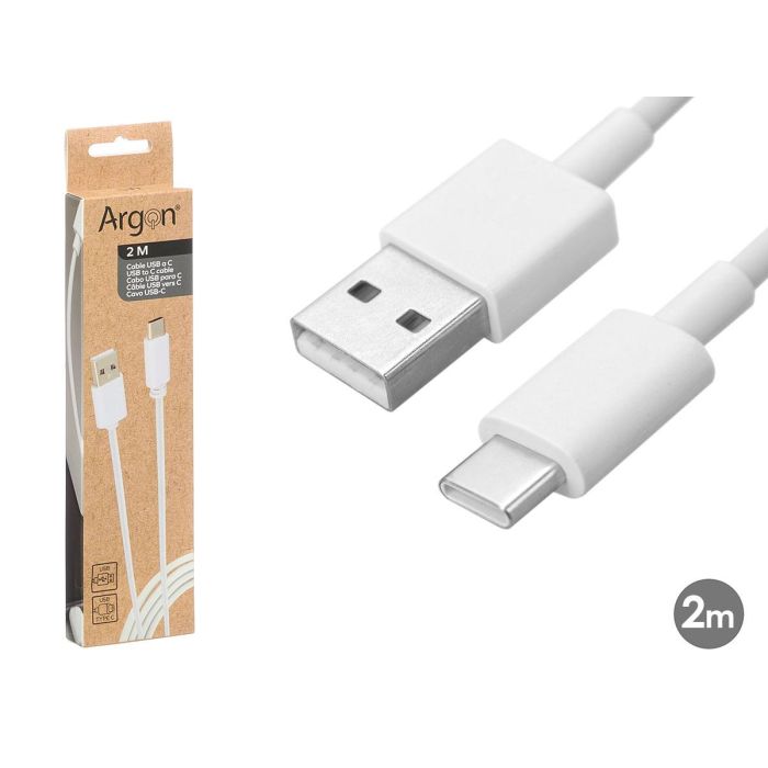 Argon Cable USB C a USB C Blanco 2 Metros PVC 2A