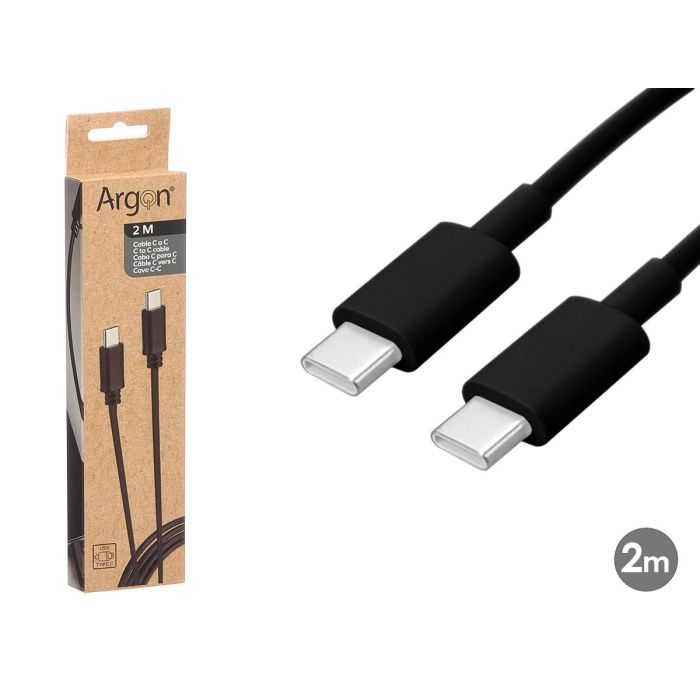 Argon Cable USB C a USB C Negro 2m Plástico para Carga Rápida 2A