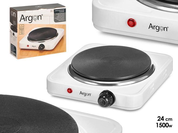Argon Hornillo Eléctrico 1500W Blanco, Dimensiones 23.5x7x27 cm, Cable 90 cm, Metal (Set de 6)
